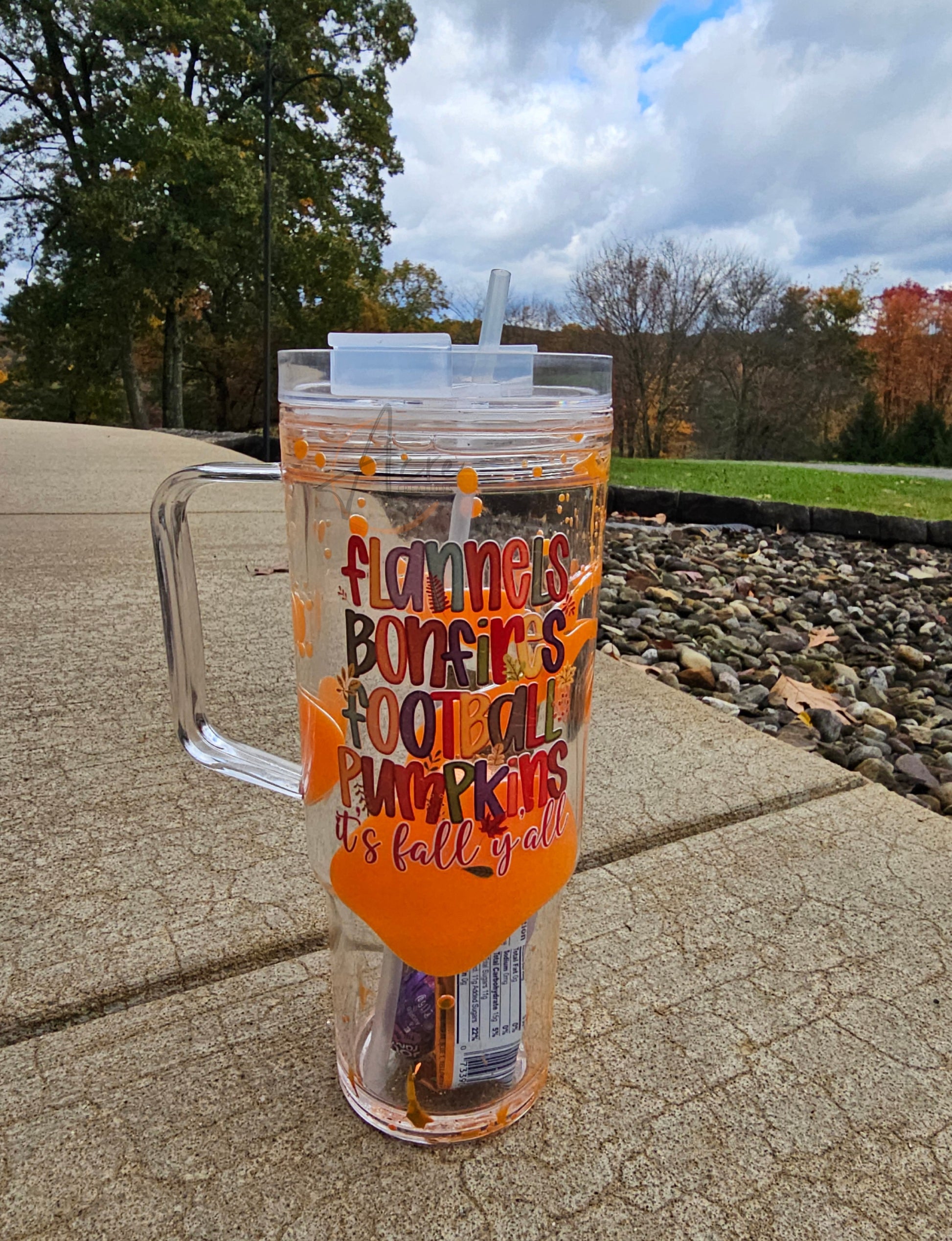 Embrace cozy moments with this 40oz lava drip cup, designed for flannel-clad bonfire nights and quiet evenings alike. The striking lava drip aesthetic adds visual appeal while the generous capacity keeps your favorite beverages at hand—whether you're warming up by the fire or curling up with a book indoors. Perfect for those who appreciate rustic charm and practical style.