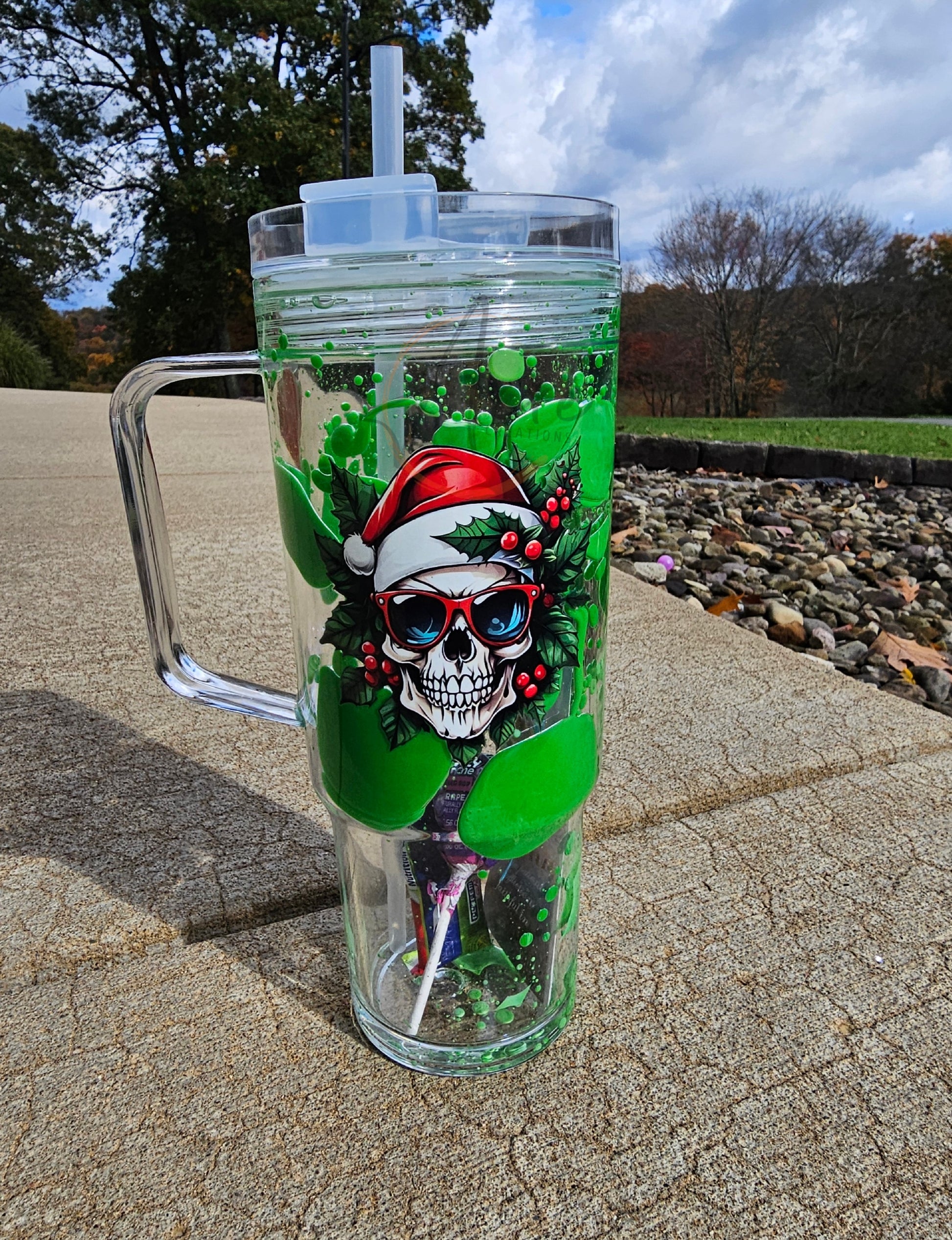 Embrace the festive season with this striking 40oz skull Christmas lava drip cup. Perfect for holiday shopping excursions, Christmas gatherings, and cozy decorating sessions at home, this bold design combines seasonal spirit with edgy style. The generous capacity keeps your favorite beverages at hand throughout the holiday rush, while the eye-catching lava drip effect adds a distinctive touch to your celebration. Whether you're hosting parties or unwinding solo, this cup delivers both functionality and personality for a memorable holiday experience.