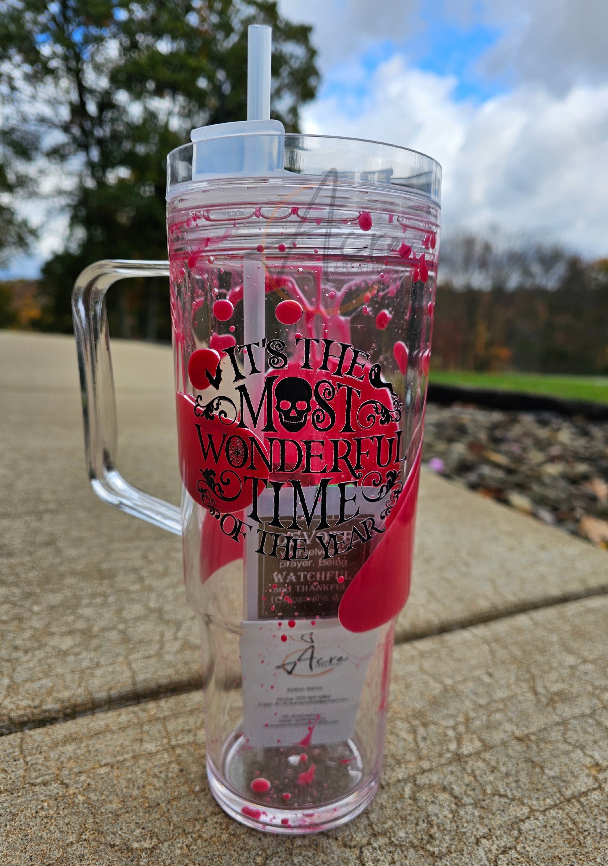 Celebrate the season with this 40oz lava drip cup, designed to keep your beverages at the perfect temperature during Halloween festivities. Whether you're accompanying trick-or-treaters through the neighborhood, hosting a festive gathering, or unwinding at home, this eye-catching tumbler delivers both style and functionality. The striking lava drip design captures the spirit of the holiday while the generous 40oz capacity ensures you stay refreshed throughout your celebrations. Durable construction makes it ideal for any autumn occasion.
